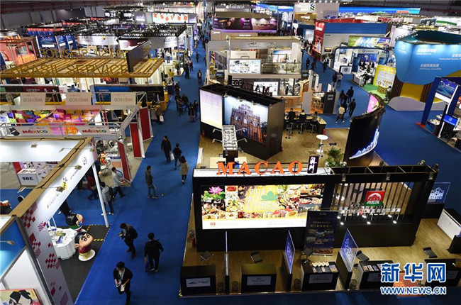 參觀者在上海舉行的首屆中國國際進(jìn)口博覽會服務(wù)貿(mào)易展區(qū)參觀(2018年11月10日攝)。新華社記者 韓瑜慶 攝