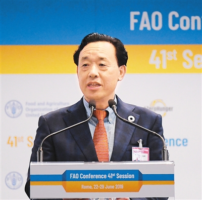 6月23日,聯(lián)合國糧食及農(nóng)業(yè)組織大會第41屆會議在意大利首都羅馬召開,中國農(nóng)業(yè)農(nóng)村部副部長屈冬玉在首輪選舉中以高票當(dāng)選糧農(nóng)組織新任總干事,成為該組織歷史上首位中國籍總干事。