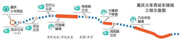 重慶日?qǐng)?bào)記者7月2日獲悉,市發(fā)展改革委近日正式批復(fù)了重慶火車西站東接線工程可行性研究報(bào)告。項(xiàng)目全長9.4公里,呈東西走向,總投資約74.9億元,建成后將緩解重慶西站對(duì)外的交通壓力。