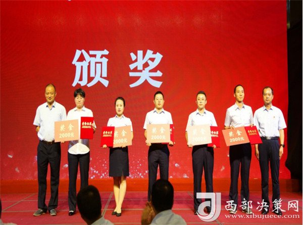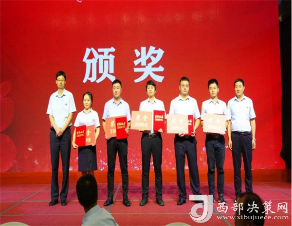 西鳳股份公司副總經(jīng)理、董事會(huì)秘書張周虎,西鳳集團(tuán)公司工會(huì)主席陳軍紅為受表彰的先進(jìn)個(gè)人頒獎(jiǎng)