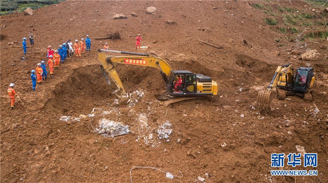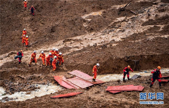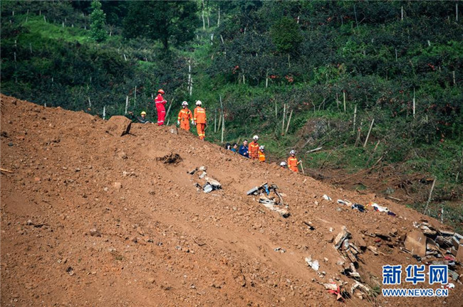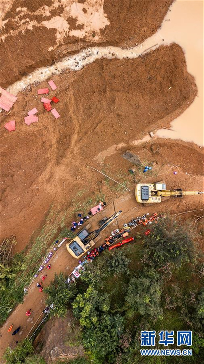 7月24日,救援人員在山體滑坡現(xiàn)場開展救援。 新華社記者 陶亮 攝