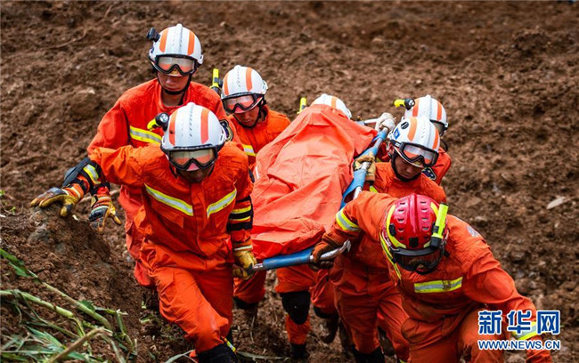 7月24日,救援人員從山體滑坡現(xiàn)場運出遇難者遺體。 新華社記者 陶亮 攝