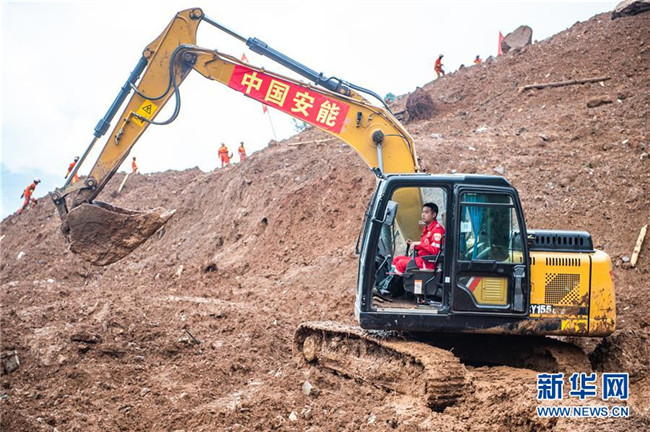 7月25日,救援人員在山體滑坡現(xiàn)場(chǎng)操作工程機(jī)械開展救援。新華社記者 陶亮 攝