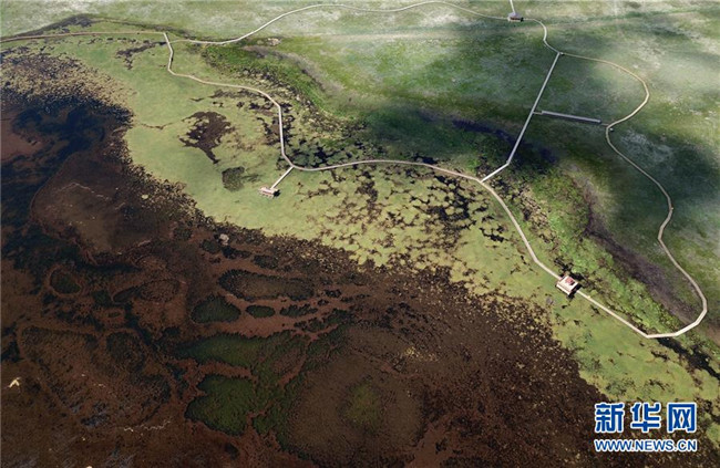 7月29日無人機(jī)拍攝的尕海湖湖畔濕地。 新華社記者 馬寧 攝