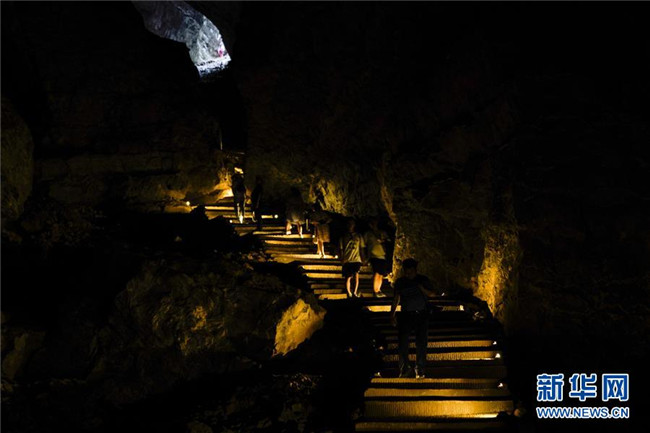 游客在重慶金佛山風(fēng)景區(qū)內(nèi)的靈觀洞景點游覽體驗(8月20日攝)。重慶市南川區(qū)的金佛山風(fēng)景區(qū)屬典型的喀斯特地貌,風(fēng)景秀美,吸引了不少游客。新華社記者劉潺攝