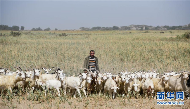 牧羊人買(mǎi)買(mǎi)提吐?tīng)柕?middot;肉孜在塔里木河下游的一片草場(chǎng)放牧(8月24日攝)。 新華社記者 阿曼 攝