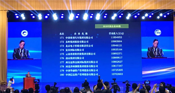 2019中國(guó)企業(yè)500強(qiáng)名單