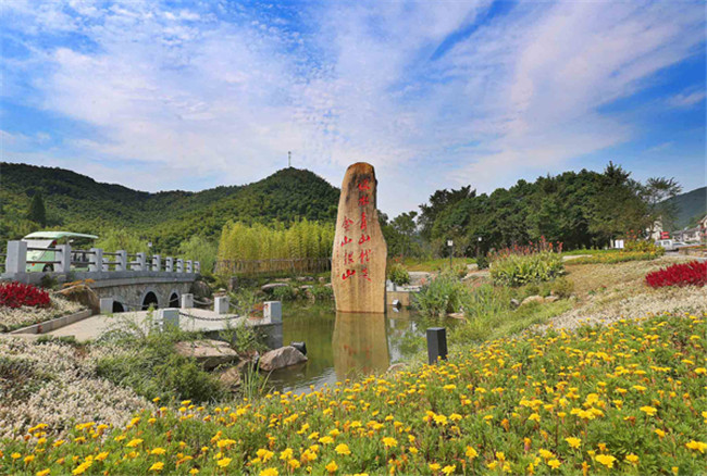 在浙江安吉余村,銘刻著“綠水青山就是金山銀山”的石碑就立在村頭,無聲地向游客“講述”著小村的致富史。 夏鵬飛攝