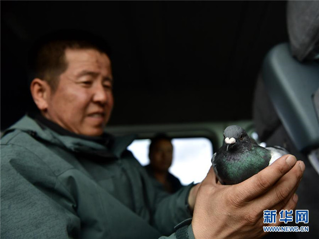 9月24日,青海湖國家級(jí)自然保護(hù)區(qū)管理局的巡湖觀測(cè)人員王延明在巡湖期間救治一只鴿子。