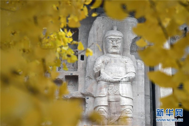 11月5日在甘肅省慶陽市北石窟寺拍攝的石窟造像。新華社記者 馬寧 攝