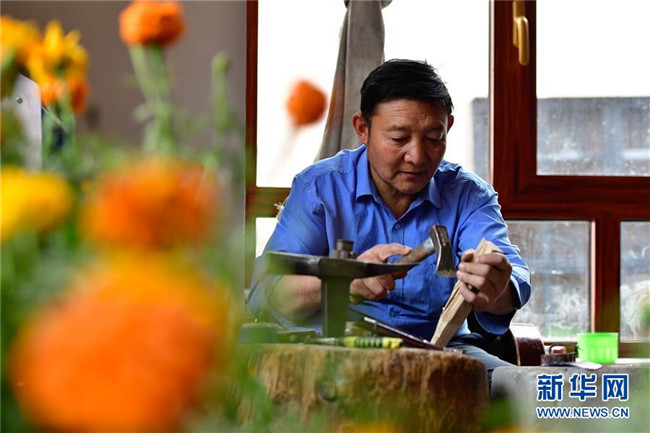 今年51歲的更求彭措是芒擦藏刀第四代傳人。在傳承藏家制作工藝的同時(shí),他還認(rèn)真帶徒傳藝,將工藝技術(shù)免費(fèi)傳授給周邊農(nóng)牧民學(xué)徒,至今已累計(jì)為百余人傳授藏刀煅制工藝,帶領(lǐng)周邊村民走上致富之路。