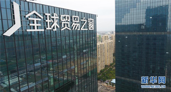 12月5日無人機拍攝的位于??谑写笥⑸紺BD的??谌蛸Q(mào)易之窗大廈。 新華社記者 楊冠宇 攝