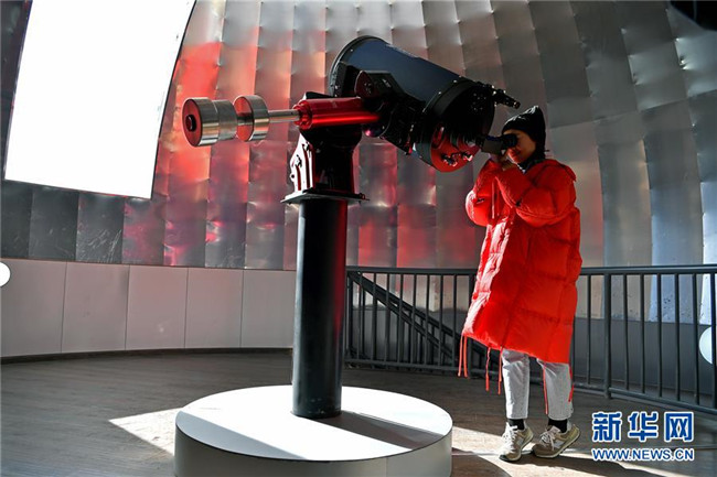 12月14日,參觀者在藏域星球天文科普體驗館體驗天文望遠鏡觀測。當日,藏域星球天文科普體驗館在西藏拉薩開館試運營,這是西藏第一家天文科普體驗館。據介紹,此館以感知宇宙、認知宇宙、探索宇宙為主題,以參觀者的第一感官體驗為設計導向,利用互動投影、懸浮投影、物體跟蹤、人體捕捉、體感互動、VR等高科技手段展示藏地的神秘,揭示宇宙的奧秘。新華社記者李鑫攝