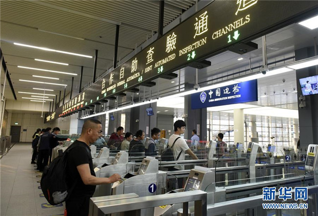 在港珠澳大橋澳門邊檢大樓,旅客從自助查驗通道通關(guān)去往廣東珠海(11月21日攝)。新華社記者 徐亮 攝