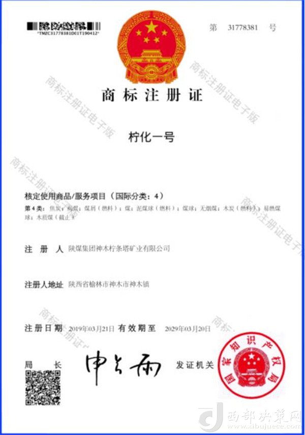 “檸條塔”混煤順利通過了陜西省名牌產品和中國名優(yōu)產品認證,“檸化一號”化工煤商標成功注冊。目前,檸條塔化工煤享譽浙江、河北、山東等地,成為了“免檢產品”。