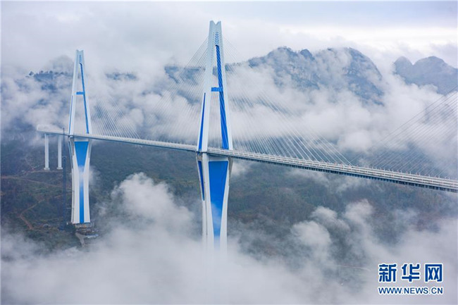 云霧繚繞中的貴州平塘特大橋(2019年12月30日攝)。 新華社記者 劉續(xù) 攝