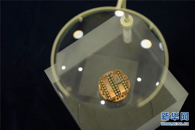 這是在天津濱海——中關(guān)村科技園協(xié)同創(chuàng)新展示中心展示的飛騰芯片(2019年1月17日攝)。 新華社記者 岳月偉 攝