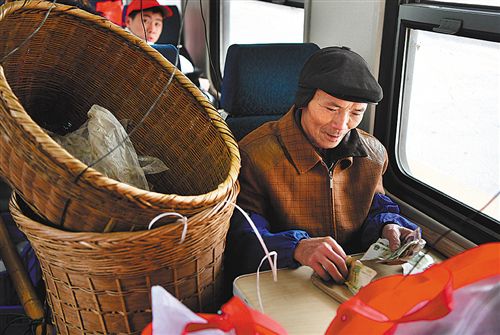 湖南省麻陽(yáng)苗族自治縣郭公坪鎮(zhèn)雙竹坡村74歲的黃前代,在乘坐的7271次列車上算賬。他每3天至4天乘坐火車去銅仁銷售一次農(nóng)副產(chǎn)品,每個(gè)月可收入2000多元。
