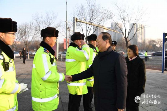 1月24日,自治區(qū)黨委書記、人大常委會主任石泰峰,自治區(qū)黨委副書記、自治區(qū)主席布小林在呼和浩特看望慰問春節(jié)期間堅守一線崗位的執(zhí)勤交警。 內(nèi)蒙古日報社融媒體記者 袁永紅 攝