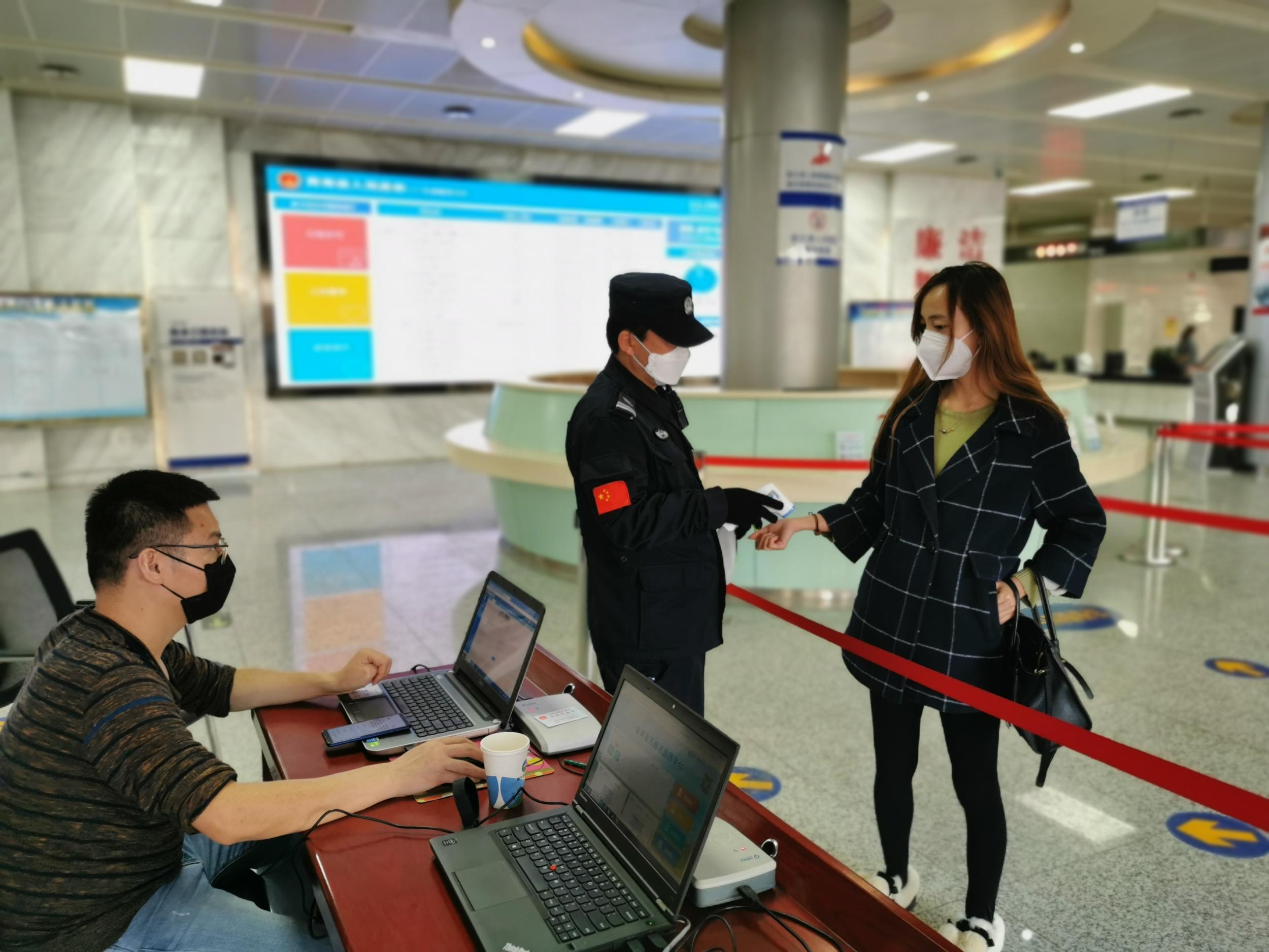 答:如確需要到省政府政務(wù)服務(wù)大廳辦理事項,請您做好自我防護,佩戴口罩進入政務(wù)服務(wù)大廳,運用“疫情防控智能化人員管控系統(tǒng)”,通過掃描二維碼或者讀取身份證信息,做好個人基本信息登記工作,經(jīng)過測量體溫和清潔消毒后快速進入大廳。在外省休假返寧和省外進青人員,應(yīng)向社區(qū)報告后嚴格落實居家隔離相關(guān)措施,居家隔離期滿后請攜帶由所在社區(qū)和疾控中心出具的《解除居家隔離或醫(yī)學(xué)觀察通知書》,經(jīng)過政務(wù)服務(wù)大廳疫情防控和安全保衛(wèi)組工作人員確認后方可進入大廳辦理事項。(陳郁)