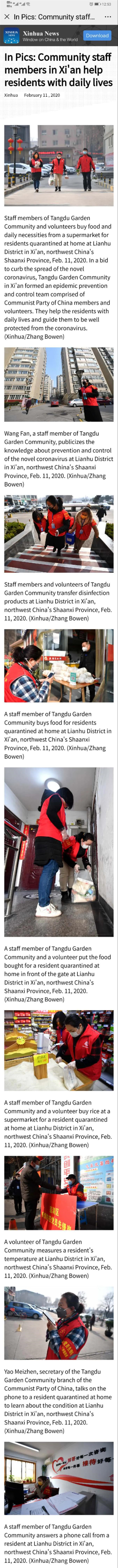 2月11日,新華社海外版用英文大篇幅報道了自新冠肺炎疫情發(fā)生以來,蓮湖區(qū)唐都花園社區(qū)充分發(fā)揮基層黨組織戰(zhàn)斗堡壘作用和黨員先鋒模范作用,形成了“黨支部+志愿服務隊”社區(qū)疫情防控體系,切實幫助居民解決日常生活困難,引導和鼓勵群眾做到群防群控。