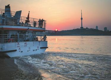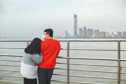 4月8日,一對情侶在長江客運輪渡上欣賞江景。新華社記者 沈伯韓 攝