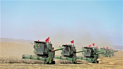 機械化收割青稞。資料圖片。張春云/攝