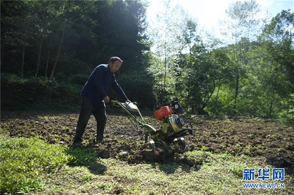 施六金在田間翻耕(4月24日攝)。1973年出生于十八洞村的施六金,由于父親患病很早就放棄學(xué)業(yè)和母親扛起了家庭的重?fù)?dān)。為了生活,他還曾遠(yuǎn)去東南亞打工。2015年,看到家鄉(xiāng)的變化,施六金回到村里開(kāi)起了農(nóng)家樂(lè),年度家庭人均純收入也從2014年的1715元增長(zhǎng)到了2019年的35696元。2018年,施六金與心愛(ài)的人組建了家庭。今年初,施六金與愛(ài)人迎來(lái)了一個(gè)大胖小子。“做人做事要懂得回報(bào)和感恩。”施六金給剛出生的兒子取名施澤恩。新華社記者薛宇舸攝