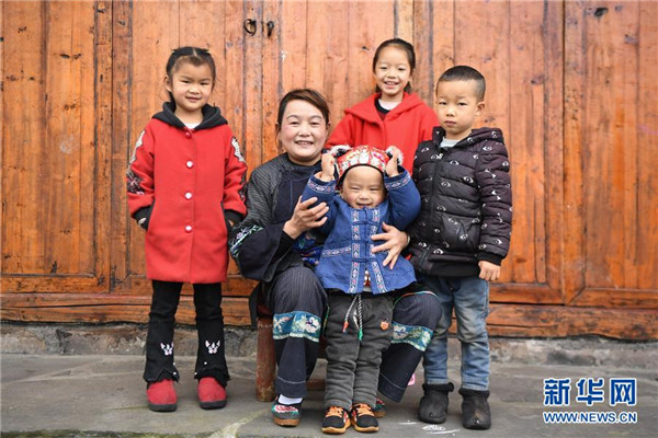 這是4月24日拍攝的吳美金(左二)和她孫子孫女的合影。1967年出生的吳美金,1992年嫁入飛蟲(chóng)村(現(xiàn)十八洞村飛蟲(chóng)寨)時(shí),只有爛泥路的飛蟲(chóng)村不僅田土少,掙錢(qián)活路也少,生活十分困難。2014年,吳美金加入了十八洞村苗繡特產(chǎn)農(nóng)民專(zhuān)業(yè)合作社,從小就會(huì)的苗繡傳統(tǒng)手藝如今成了家庭增收的法寶,不僅在家門(mén)口就把錢(qián)掙了,同時(shí)還能照顧年幼的孫子孫女。“現(xiàn)在的日子,比年輕的時(shí)候好多了。”吳美金說(shuō)。新華社記者薛宇舸攝