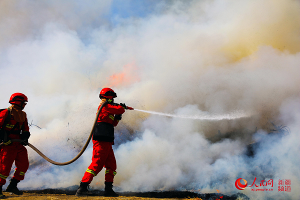 5月6日,新疆尼勒克古楊濕地公園,一場滅火演練正在進行……