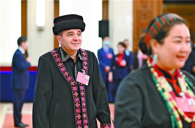 5月24日,全國(guó)政協(xié)十三屆三次會(huì)議第二場(chǎng)“委員通道”采訪活動(dòng)舉行。這是全國(guó)政協(xié)委員玉克賽克·西加艾提接受完采訪離開“委員通道”。 新華社記者 劉金海攝