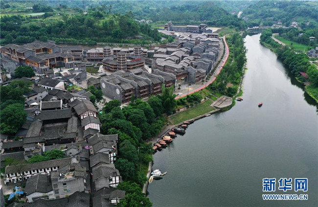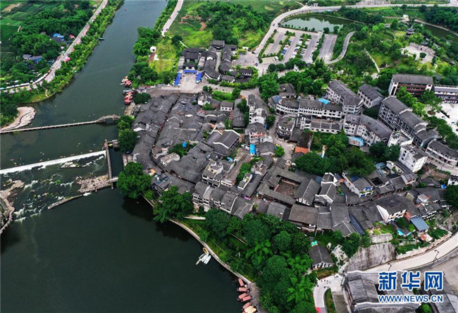 6月26日拍攝的萬靈古鎮(zhèn)(無人機(jī)照片)。  新華社記者 王全超 攝
