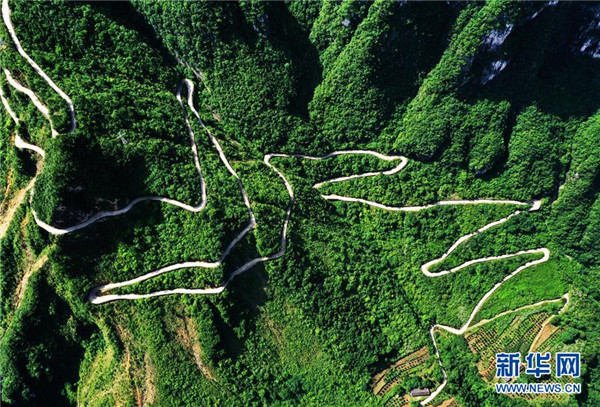 下莊村通往外界的公路(7月3日攝,無人機照片)。新華社記者王全超攝