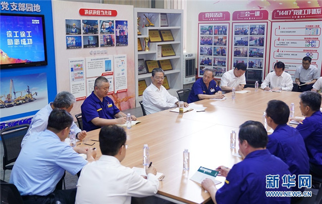 7月19日至22日,中共中央政治局常委、中央紀委書記趙樂際到江蘇調(diào)研。這是7月20日,趙樂際在徐工集團徐州重型機械有限公司與職工代表座談交流。 新華社記者 張領(lǐng) 攝