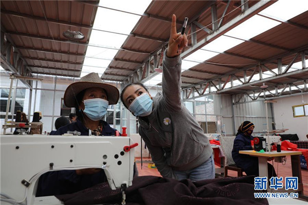 7月23日,在甘肅省甘南藏族自治州夏河縣桑科鎮(zhèn)崗岔村的扶貧車間內(nèi),卓瑪吉(左二)了解成衣加工情況。崗岔村是甘肅省甘南藏族自治州夏河縣??奇?zhèn)的一個(gè)牧業(yè)村,平均海拔3000米以上。2018年,在夏河縣文明辦工作的卓瑪吉開始擔(dān)任駐村幫扶工作隊(duì)隊(duì)長(zhǎng),每年都有200多天待在草原上。兩年來(lái),卓瑪吉帶領(lǐng)大家開辦扶貧車間,發(fā)展特色產(chǎn)業(yè),聯(lián)系勞務(wù)輸出。為了讓村民更全面地了解精準(zhǔn)扶貧政策,卓瑪吉登門宣講政策。為了提高村容村貌,卓瑪吉發(fā)動(dòng)大家開展廁所革命和庭院環(huán)境評(píng)比,積極響應(yīng)甘南藏族自治州“全域無(wú)垃圾”創(chuàng)建行動(dòng)。她還從縣城請(qǐng)來(lái)醫(yī)生,為村民舉辦健康講座,在全村婦女中開展“兩癌篩查”。如今,崗岔村變成了干凈、整齊、富裕、美麗的生態(tài)文明村,提前實(shí)現(xiàn)了整村脫貧。談起心愿,卓瑪吉說(shuō):“要讓草原和草原上的人都變得更美。”新華社發(fā)(杜哲宇攝)
