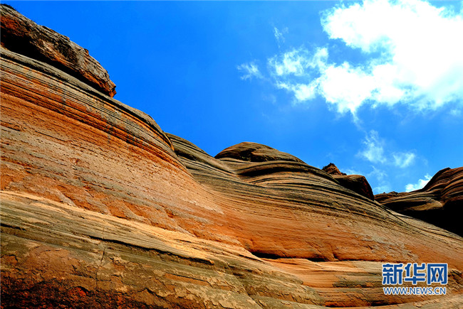 8月19日拍攝的陜西省榆林市靖邊縣龍州鎮(zhèn)丹霞地貌景區(qū)。樊悅攝