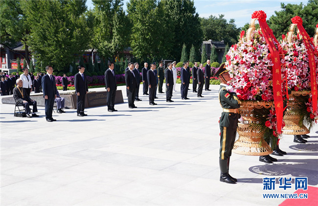 紀念中國人民抗日戰(zhàn)爭暨世界反法西斯戰(zhàn)爭勝利75周年向抗戰(zhàn)烈士敬獻花籃儀式在京舉行 習近平李克強栗戰(zhàn)書汪洋王滬寧趙樂際韓正王岐山出席儀式