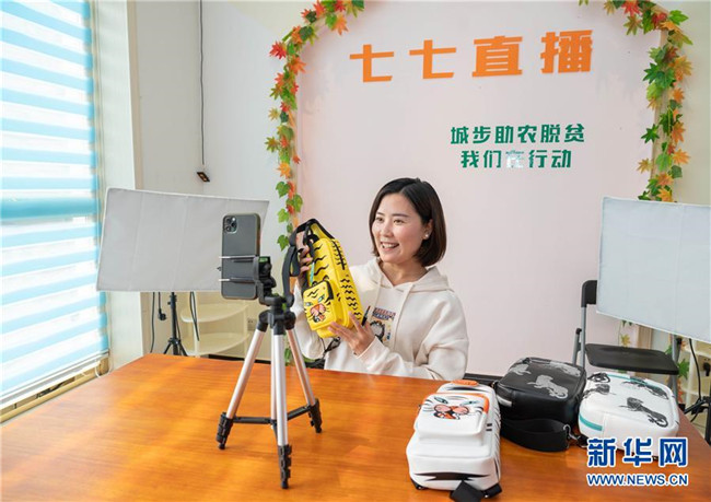 10月13日,在湖南省邵陽(yáng)市城步縣湖南七七科技股份有限公司,殘疾女青年楊淑亭通過(guò)網(wǎng)絡(luò)銷售背包。1991年出生的苗族姑娘楊淑亭因車禍胸部以下高位截癱,通過(guò)不斷學(xué)習(xí)摸索,開(kāi)辦網(wǎng)店并注冊(cè)了自己的企業(yè),與周邊貧困家庭簽訂合作協(xié)議,制作售賣(mài)具有民族特色的背包和仿真花卉,帶動(dòng)上千名貧困人員及59名殘疾人就業(yè)。