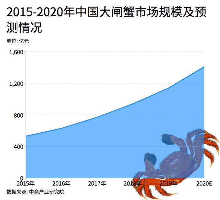 大閘蟹又被稱為中華絨螯蟹,分布在我國北起遼河南至珠江,其中以長江水系產(chǎn)量最大。近年來隨著消費(fèi)者對大閘蟹的喜愛程度的提高,其市場需求不斷增長。據(jù)相關(guān)數(shù)據(jù)統(tǒng)計(jì)2018年大閘蟹產(chǎn)量高達(dá)80萬噸左右,產(chǎn)業(yè)規(guī)模2019年突破億元,年增速約20%。據(jù)預(yù)測,到2020年我國大閘蟹市場規(guī)?;蚪咏?500億元。