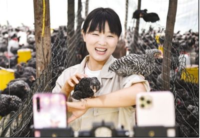 陜西省商洛市丹鳳縣寺坪鎮(zhèn)寺坪村網(wǎng)絡主播李萌在直播介紹自家養(yǎng)的蘆花雞。 |
