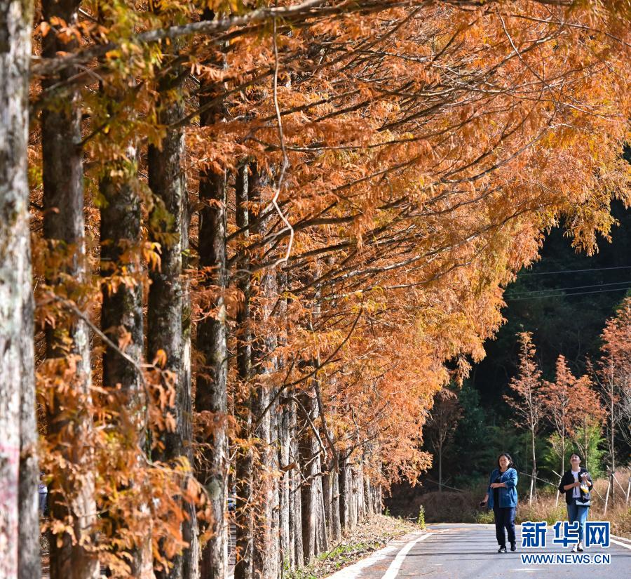 游客在福建省三明市將樂(lè)縣龍棲山國(guó)家級(jí)自然保護(hù)區(qū)水杉大道游覽(11月20日攝)。新華社記者 宋為偉 攝