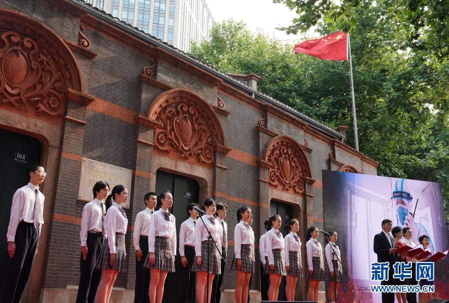 2020年7月1日,“七一”重溫入黨誓詞儀式在中共一大會址前舉行。這是活動現(xiàn)場以詩朗誦形式講述抗疫一線的黨員故事。新華社記者 劉穎 攝