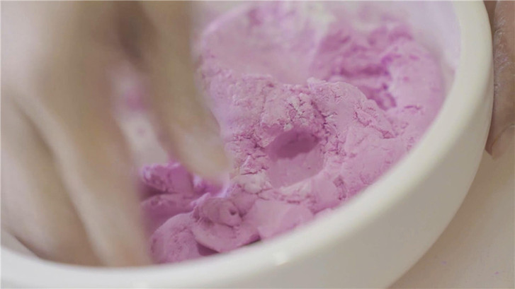 把榨好的蔬果汁與糯米粉和面團(tuán)。