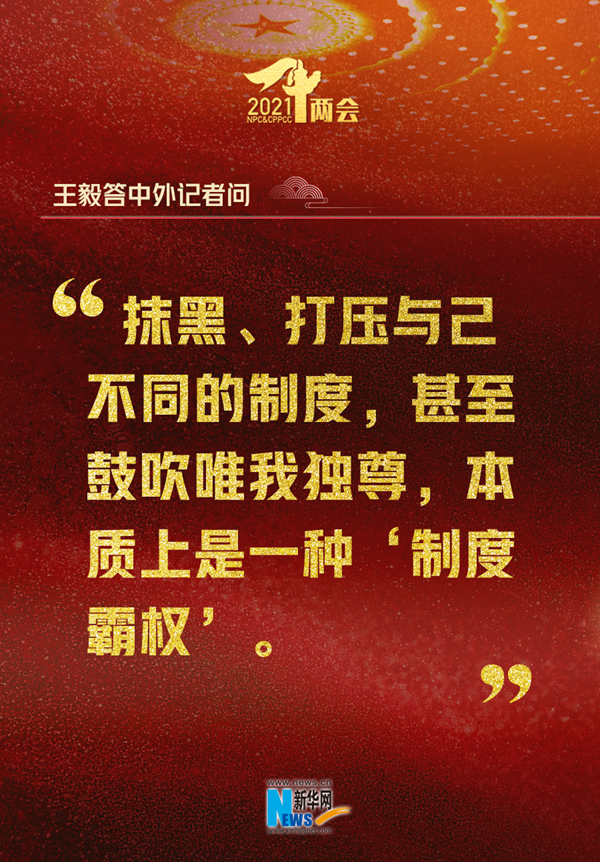 原聲回放:制度的選擇需要量體裁衣,不能削足適履。一個(gè)國家的路走得對不對,關(guān)鍵在于是否符合本國國情。抹黑、打壓與己不同的制度,甚至鼓吹唯我獨(dú)尊,本質(zhì)上是一種“制度霸權(quán)”。