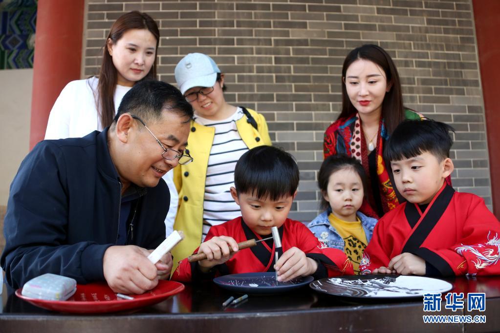 5月1日,在山東省棗莊市孟莊鎮(zhèn)境內(nèi)的龜山風景區(qū),民間藝人胡安同(前左一)向小朋友傳授非遺刻瓷技藝。文化和旅游部5月5日晚間公布2021年“五一”假期旅游市場數(shù)據(jù)。統(tǒng)計顯示,5月1日至5日,全國國內(nèi)旅游出游2.3億人次,同比增長119.7%,按可比口徑恢復(fù)至疫前同期的103.2%。新華社發(fā)(孫中喆 攝)