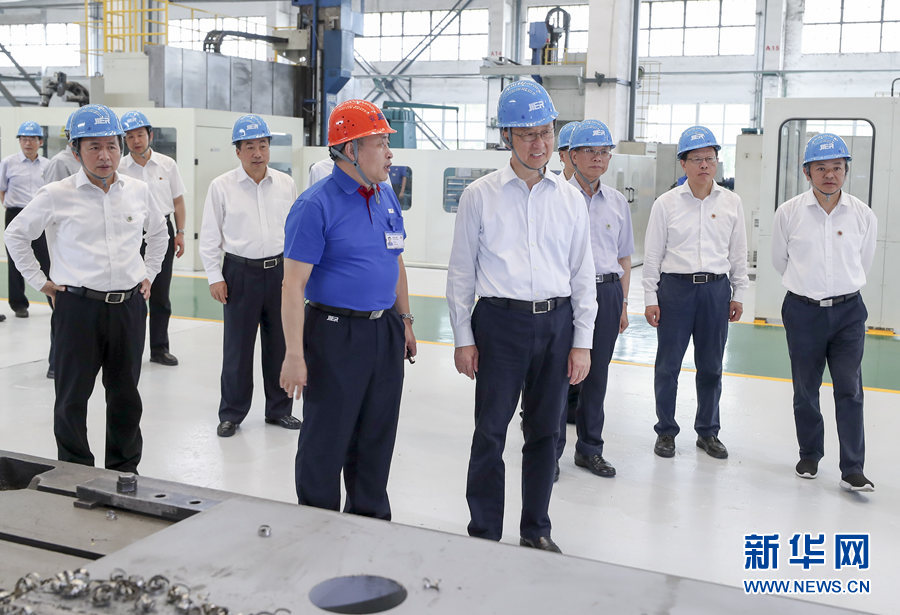 7月5日至6日,中共中央政治局常委、國務(wù)院副總理韓正先后在山東東營、濟(jì)南調(diào)研。這是7月6日,韓正在濟(jì)南二機(jī)床集團(tuán)有限公司考察企業(yè)生產(chǎn)運營和技術(shù)研發(fā)情況。新華社記者 姚大偉 攝