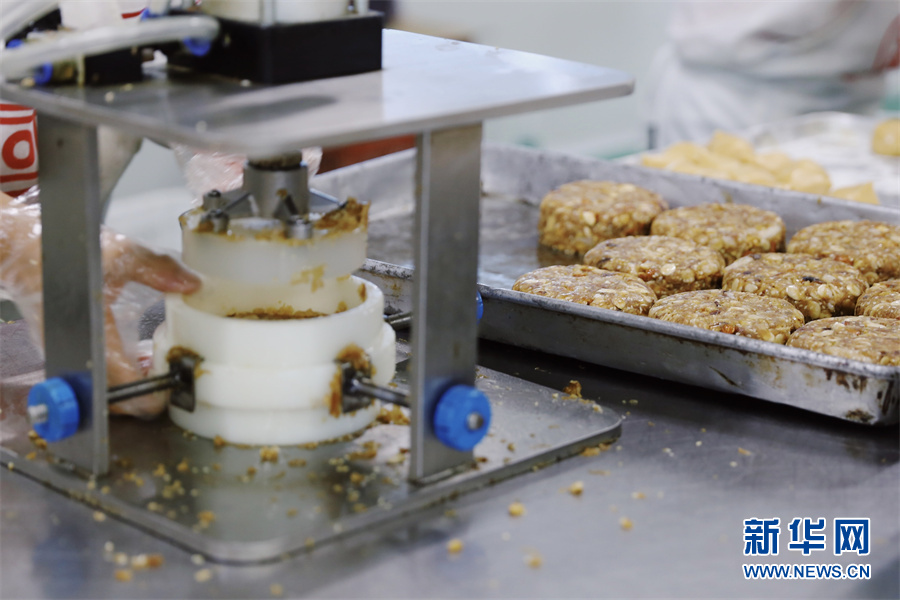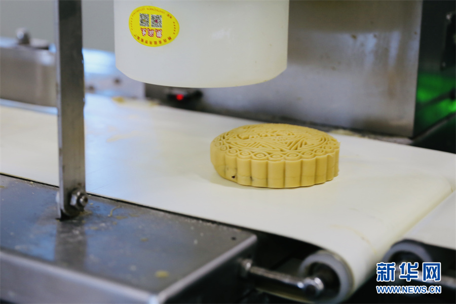 機(jī)器壓制出月餅花紋。鐘涓涓 攝