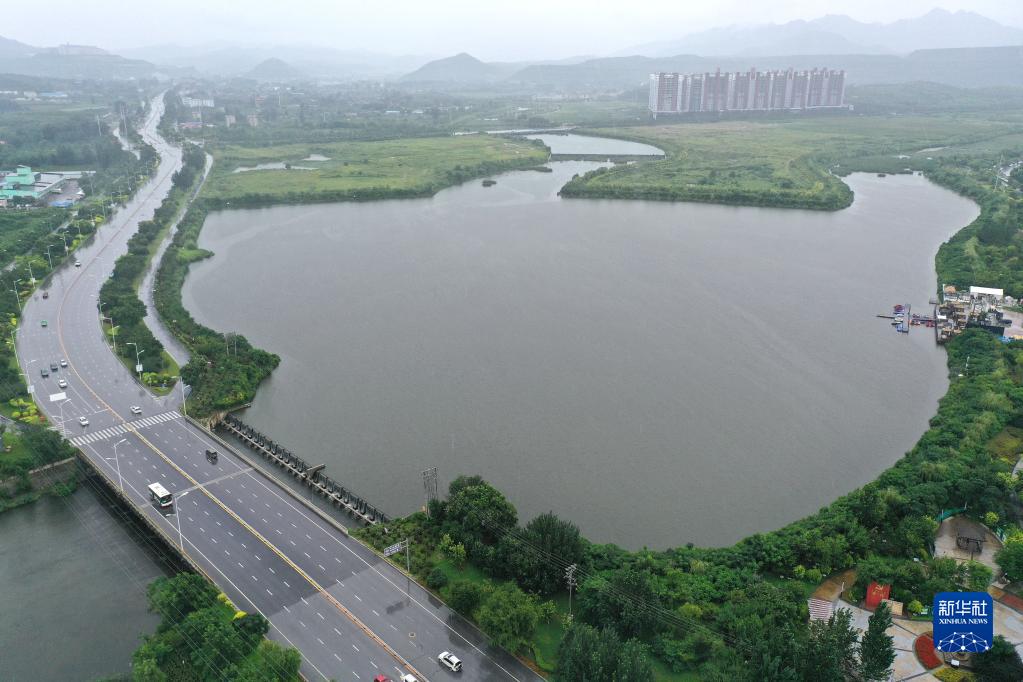 這是遼寧省鞍山市高新區(qū)火炬廣場前的南沙河水域(8月20日攝,無人機(jī)照片)?!⌒氯A社記者 姚劍鋒 攝