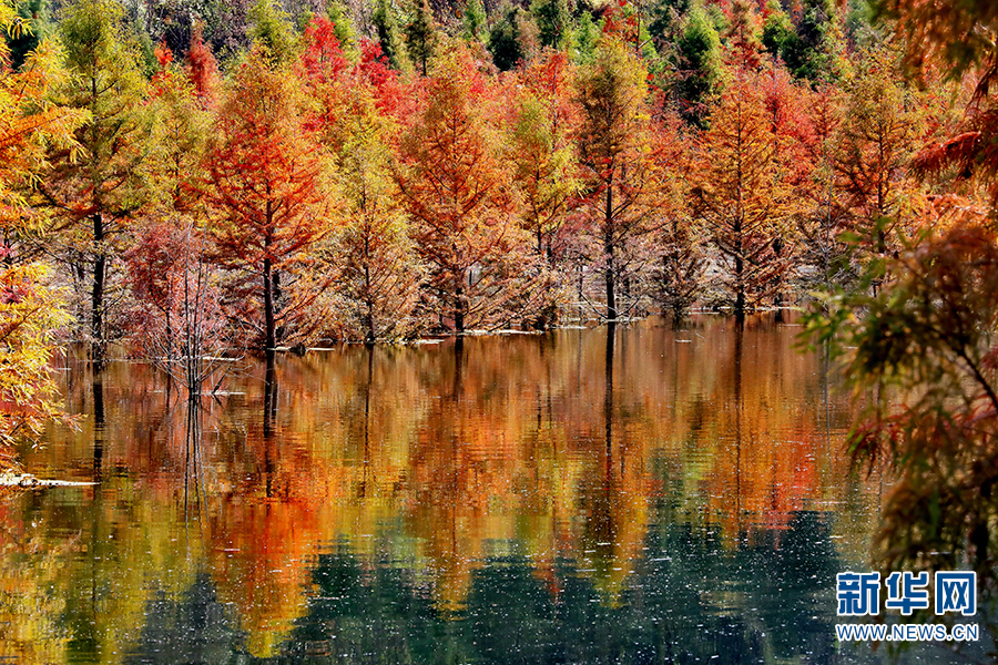 清澈的水面上倒映著一排排整齊的水杉樹(shù)(11月26日攝)。新華網(wǎng)發(fā)(盤(pán)龍區(qū)融媒體中心 供圖)