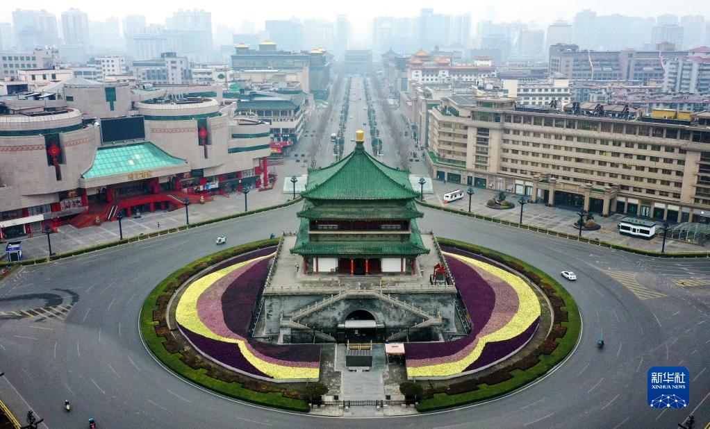 12月23日拍攝的西安鐘樓(無(wú)人機(jī)照片)。新華社記者 劉瀟 攝